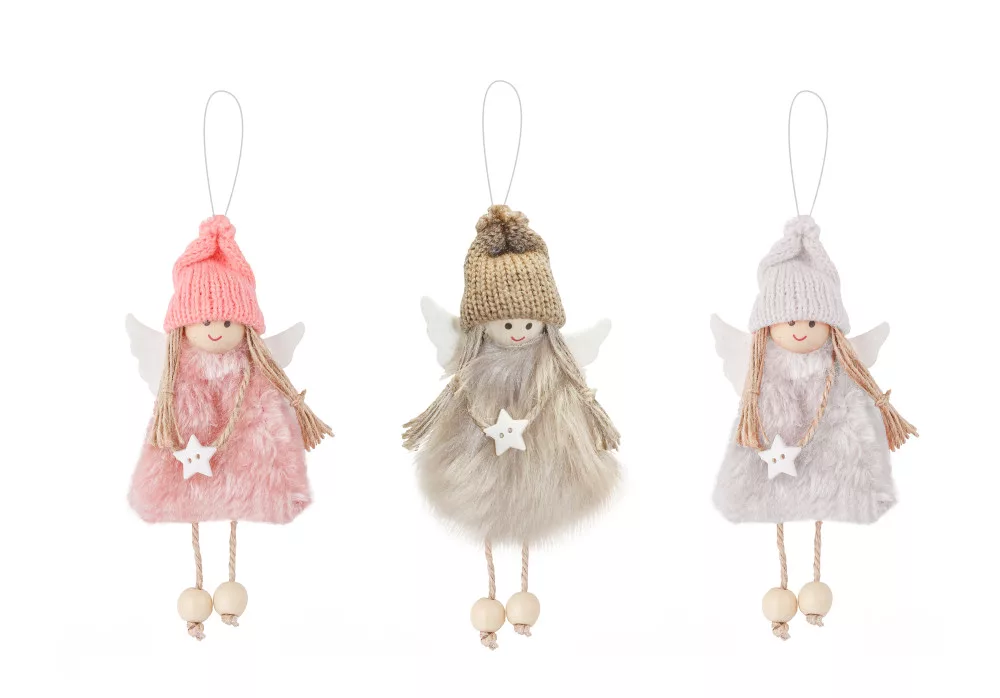 DEKOR AKASZTÓS ANGYALLÁNY CSILAGGAL, SZŐRMÉS RUHÁBAN, RÓZSASZÍN VAGY DRAPP VAGY FEHÉR