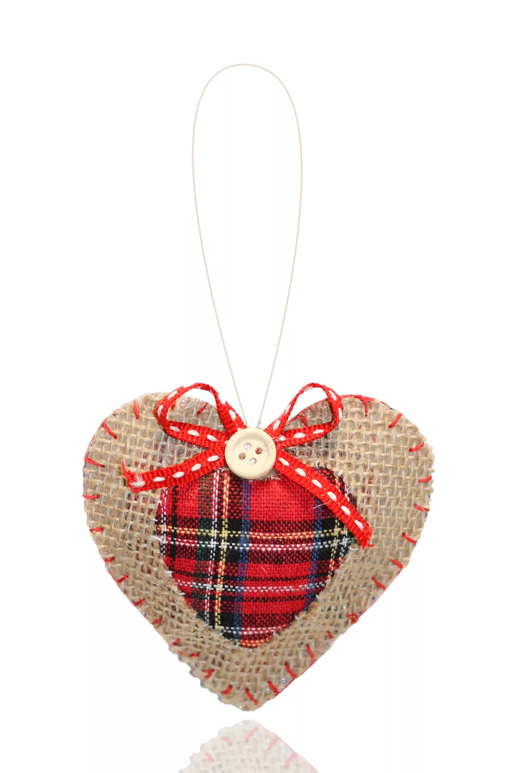 DEKOR AKASZTÓS FILC SZÍV, NATÚR ÉS PIROS-ZÖLD KOCKÁS