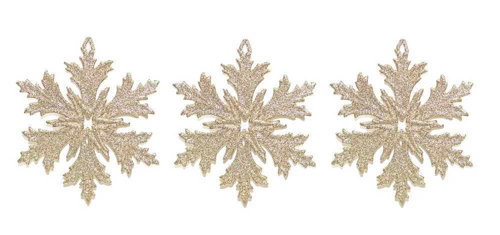 AKASZTÓS KARÁCSONYI DÍSZ HÓKRISTÁLY SZETT, 3 DARABOS, ARANY GLITTER