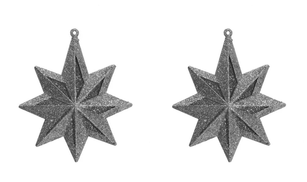 AKASZTÓS KARÁCSONYI DÍSZ CSILLAG SZETT, 2 DARABOS, ÁTTETSZŐ, EZÜST