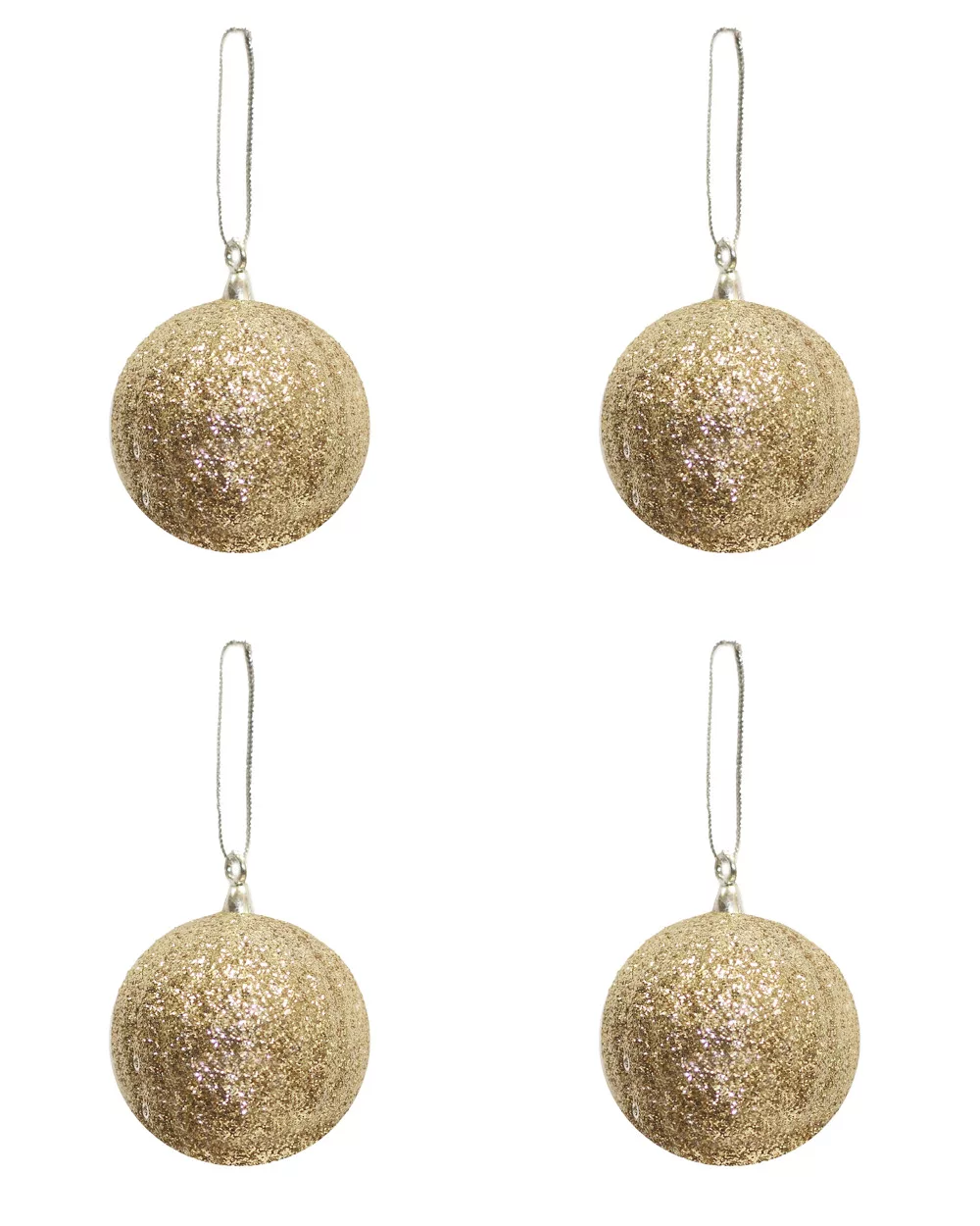 AKASZTÓS KARÁCSONYI DÍSZ GÖMB SZETT, 4 DARABOS, BORDÁS MINTÁS, ARANY