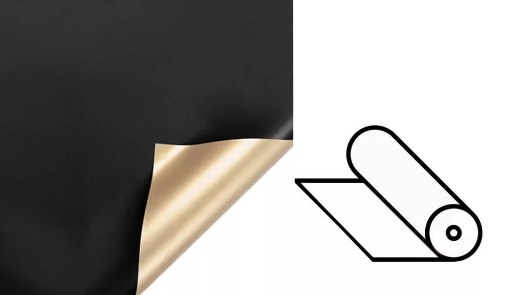 MŰANYAG CSOMAGOLÓ, TEKERCSES, KÉT OLDALAS, ARANY ÉS FEKETE