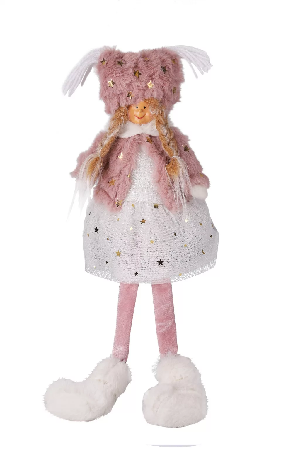 DEKOR TEXTIL LÁNY, ÜLŐ, LÓGÓLÁBÚ, RÓZSASZÍN ÉS FEHÉR