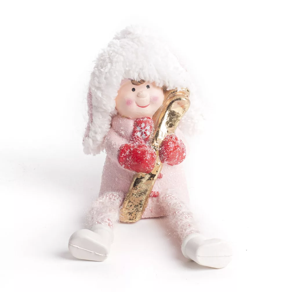KERÁMIA GYEREK, SÍLÉCCEL, LÓGÓ LÁBBAL, RÓZSASZÍN/ARANY