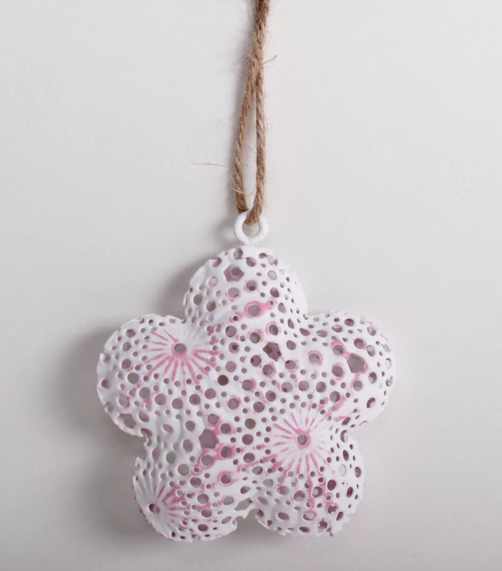 FÉM DEKORÁCIÓ VIRÁG AKASZTÓVAL RÓZSASZÍN