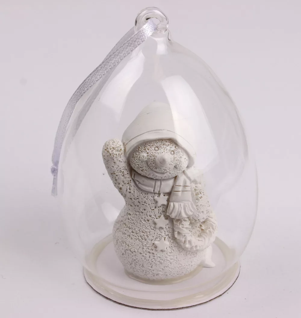 POLIREZIN AKASZTÓS HÓEMBER ÜVEGBÚRÁBAN, FEHÉR