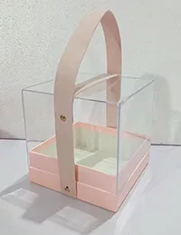 AJÁNDÉK DOBOZ, FÜLLEL, MŰANYAG PLEXI, NÉGYSÖGLETES, RÓZSASZÍN