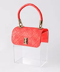 AJÁNDÉK DOBOZ, MŰANYAG PLEXI, TÁSKA ALAKÚ, PIROS