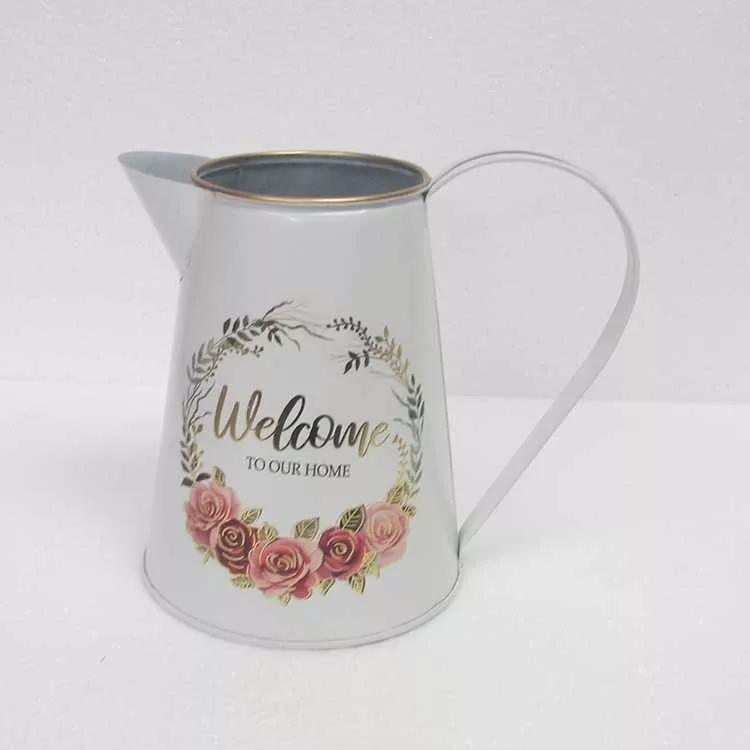 BÁDOG ÖNTÖZŐ KANNA, VIRÁG KOSZORÚ, WELCOME TO OUR HOME FELIRAT