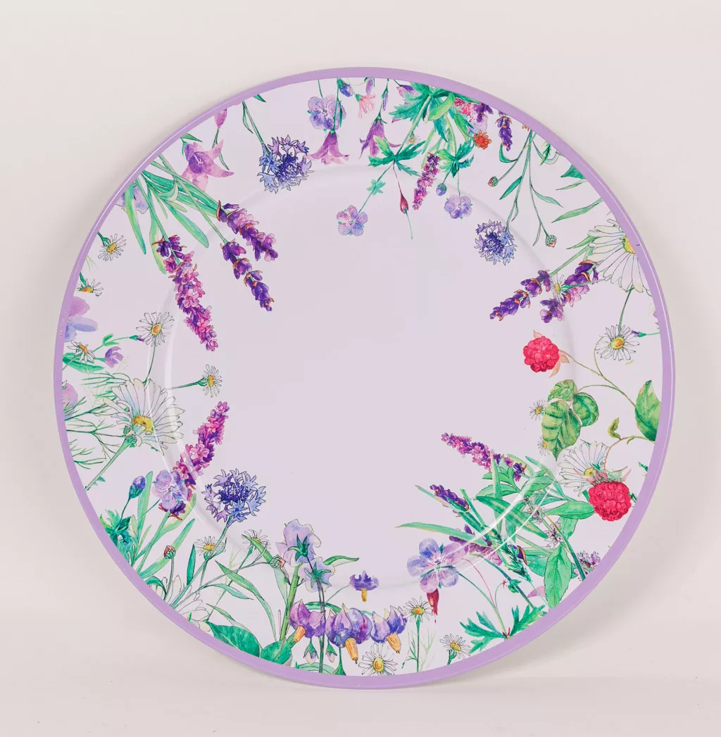 BÁDOG TÁLCA KEREK, LILA VIRÁGOS