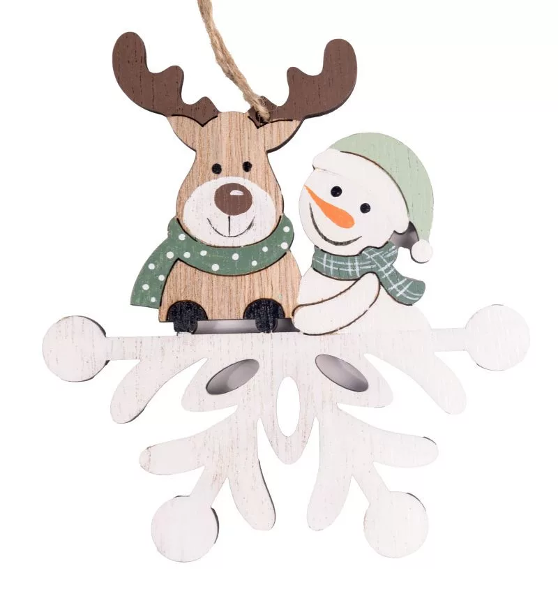 FA AKASZTÓS HÓEMBER RÉNSZARVASSAL, FEHÉR ÉS ZÖLD