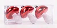KARÁCSONYFA DÍSZ, AKASZTÓS, GOMBA, SZETTBEN, 3 DARABOS, GLITTERES, PIROS ÉS FEHÉR