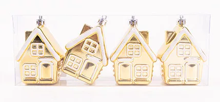 KARÁCSONYFA DÍSZ, AKASZTÓS, HÁZ SZETTBEN, 4 DARABOS, ARANY