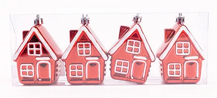 KARÁCSONYFA DÍSZ, AKASZTÓS, HÁZ SZETTBEN, 4 DARABOS, PIROS