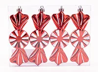 KARÁCSONYFA DÍSZ, AKASZTÓS, SZALONCUKOR, SZETTBEN, 4 DARABOS, GLITTERES, PIROS ÉS FEHÉR