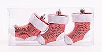 KARÁCSONYFA DÍSZ, AKASZTÓS, ZOKNI, SZETTBEN, 3 DARABOS, GLITTERES, PIROS ÉS FEHÉR