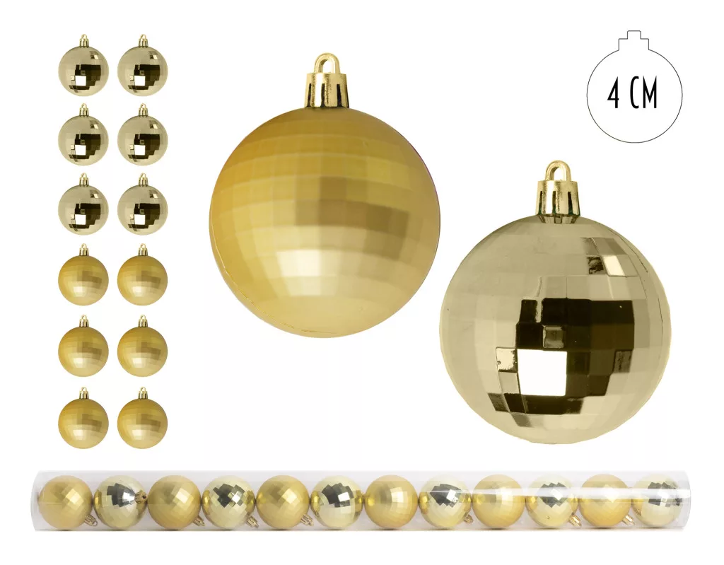 KARÁCSONYI DÍSZ, DISCOGÖMB, SZETTBEN, PVC DOBOZBAN, 12 DARABOS, ARANYSÁRGA