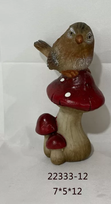 KERÁMIA GOMBA, MADÁRRAL, PIROS NATÚR