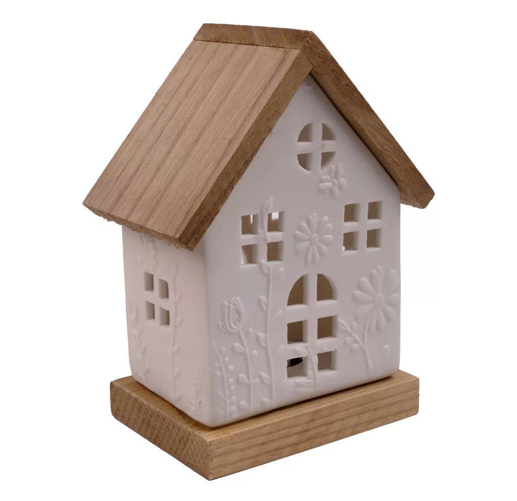 KERÁMIA HÁZ, LEDDEL, FA TETŐ, FEHÉR BARNA