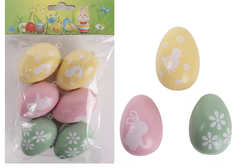 MŰANYAG AKASZTÓS TOJÁS SZETTBEN, 6 DARABOS, PASZTELL, VIRÁG MINTÁS