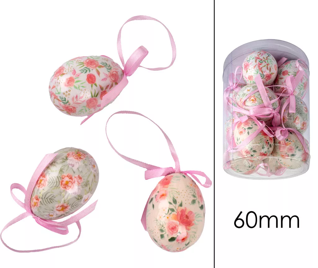 MŰANYAG TOJÁS SZETTBEN, 12 DARABOS, PLEXI DOBOZBAN, ZÖLD ÉS RÓZSASZÍN VIRÁGOS
