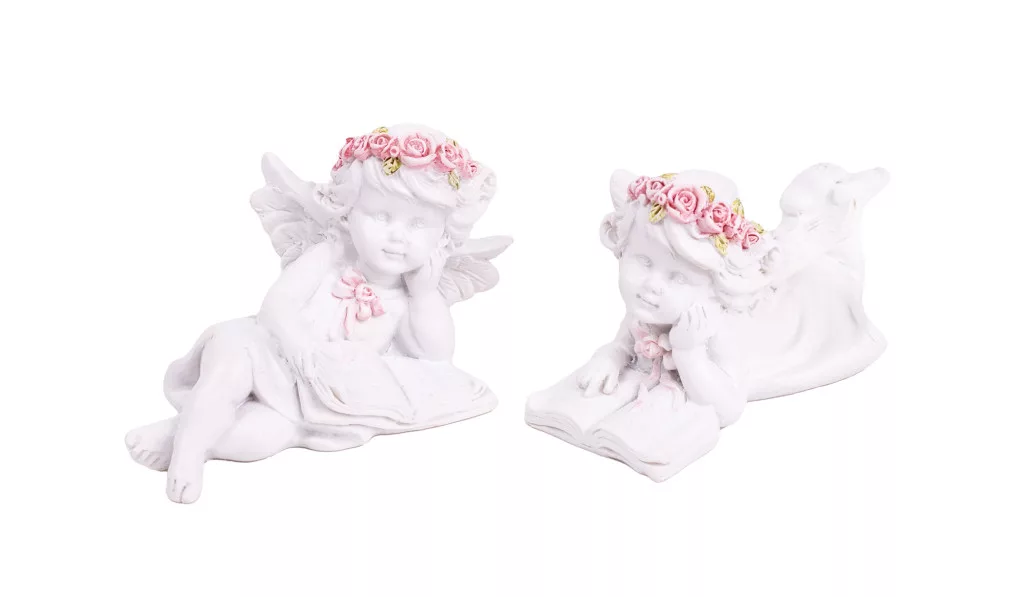 POLIREZIN ANGYAL, KÖNYÖKLŐ, KÖNYVVEL, FEHÉR RÓZSASZÍN