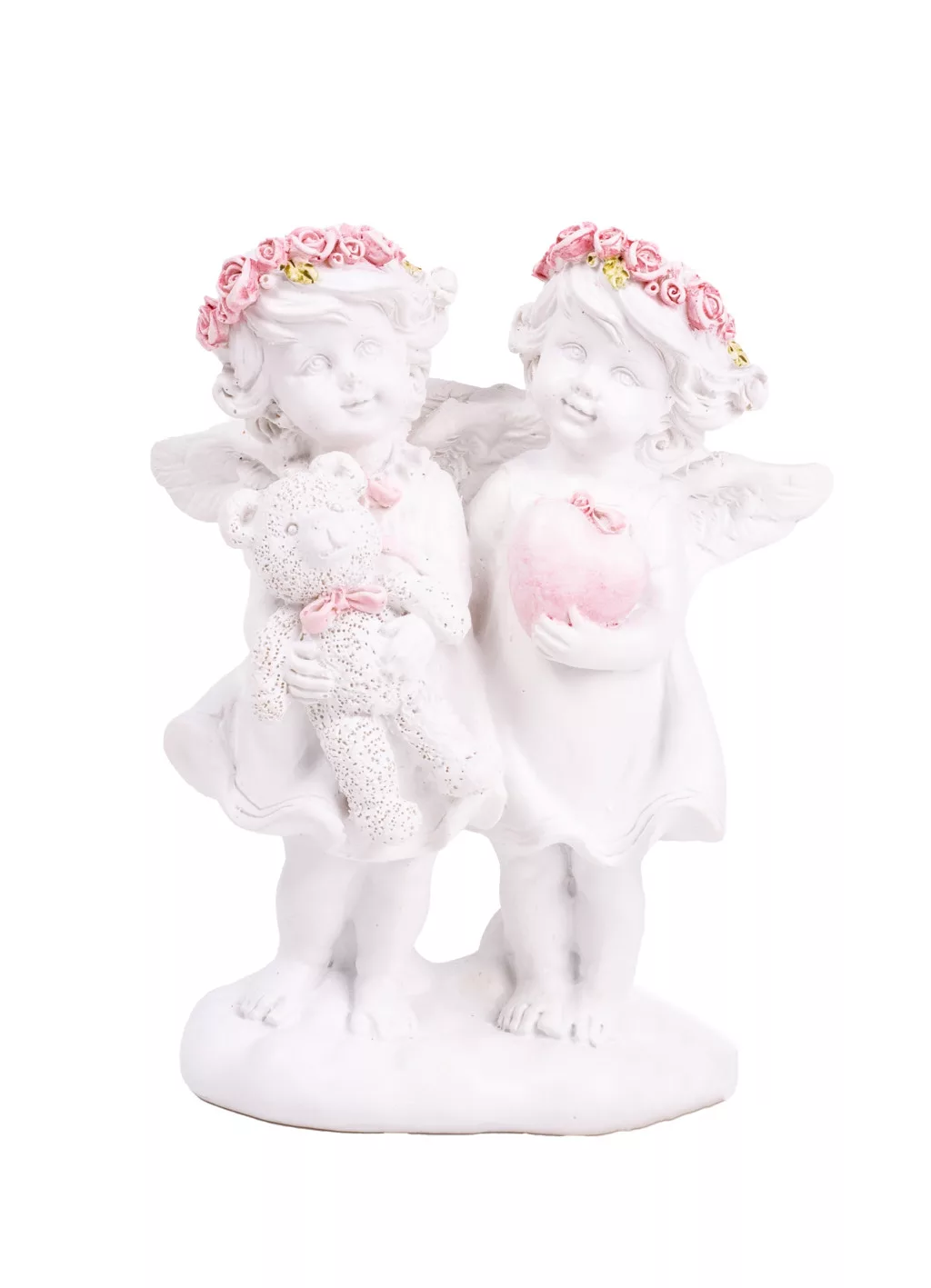 POLIREZIN ANGYALOK, MEDVÉVEL, SZÍVVEL, FEHÉR RÓZSASZÍN
