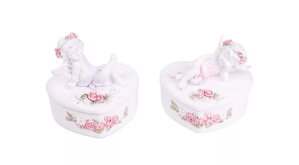 POLIREZIN BONBONIER, ANGYALOS, RÓZSÁVAL, FEHÉR RÓZSASZÍN