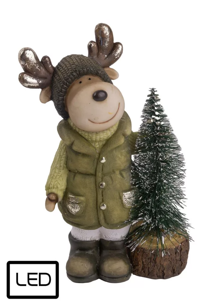 POLIREZIN RÉNSZARVAS ZÖLD KABÁTBAN, FENYŐFÁVAL