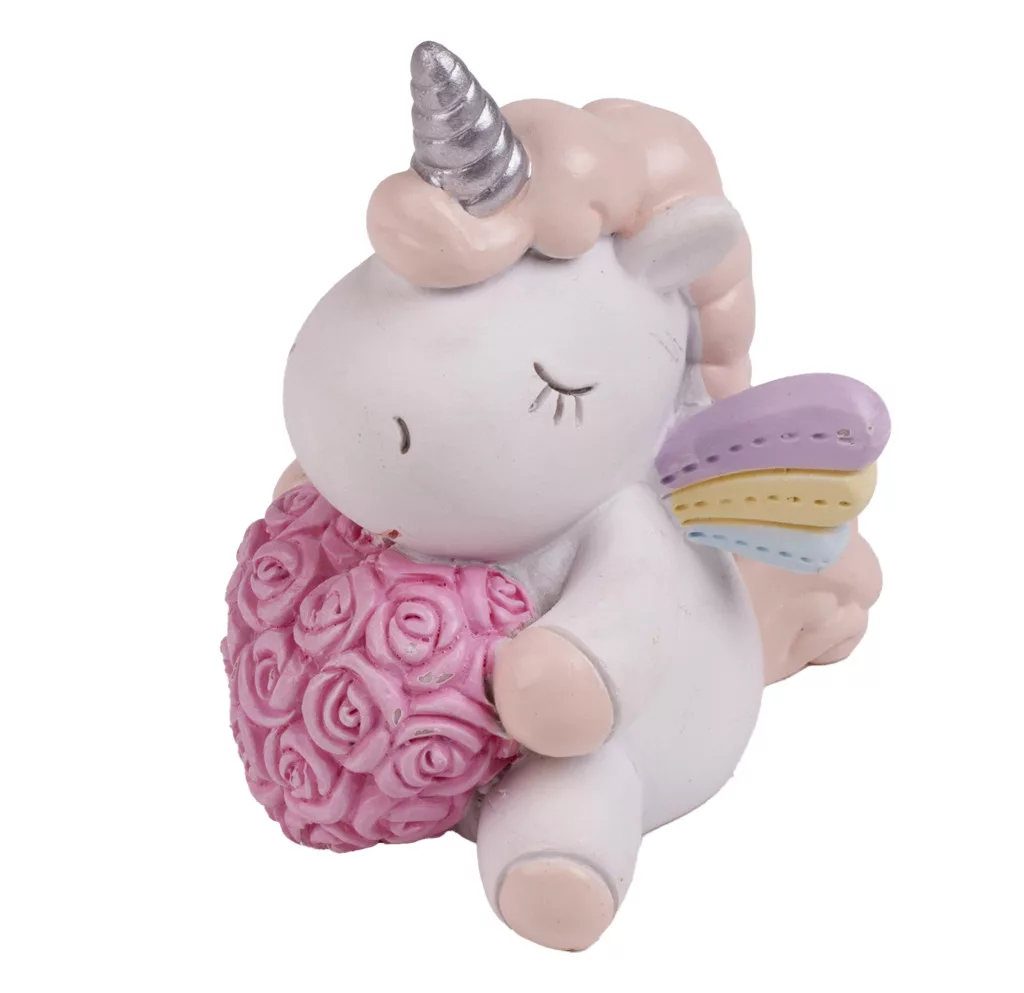POLIREZIN UNIKORNIS, RÓZSASZÍVVEL, FEHÉR RÓZSASZÍN