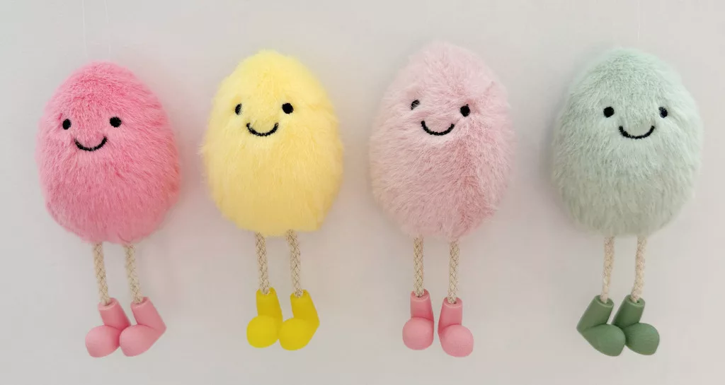 TEXTIL AKASZTÓS TOJÁS, ARCCAL, BUNDÁS, LÓGÓ LÁBÚ