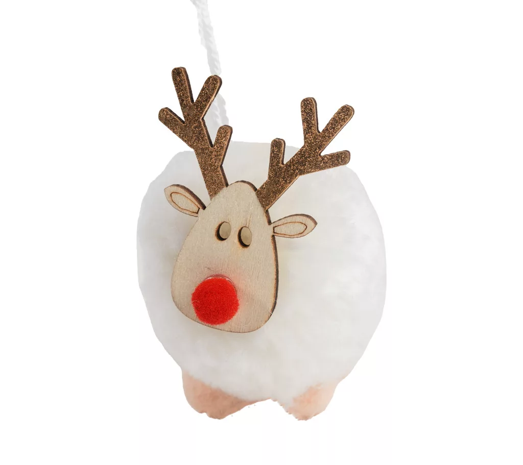TEXTIL AKASZTÓS RÉNSZARVAS PIROS ORRAL, FEHÉR