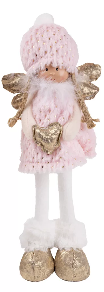 TEXTIL ANGYAL ÁLLÓ, RÓZSASZÍN ÉS ARANY, SZÍVVEL A KEZÉBEN
