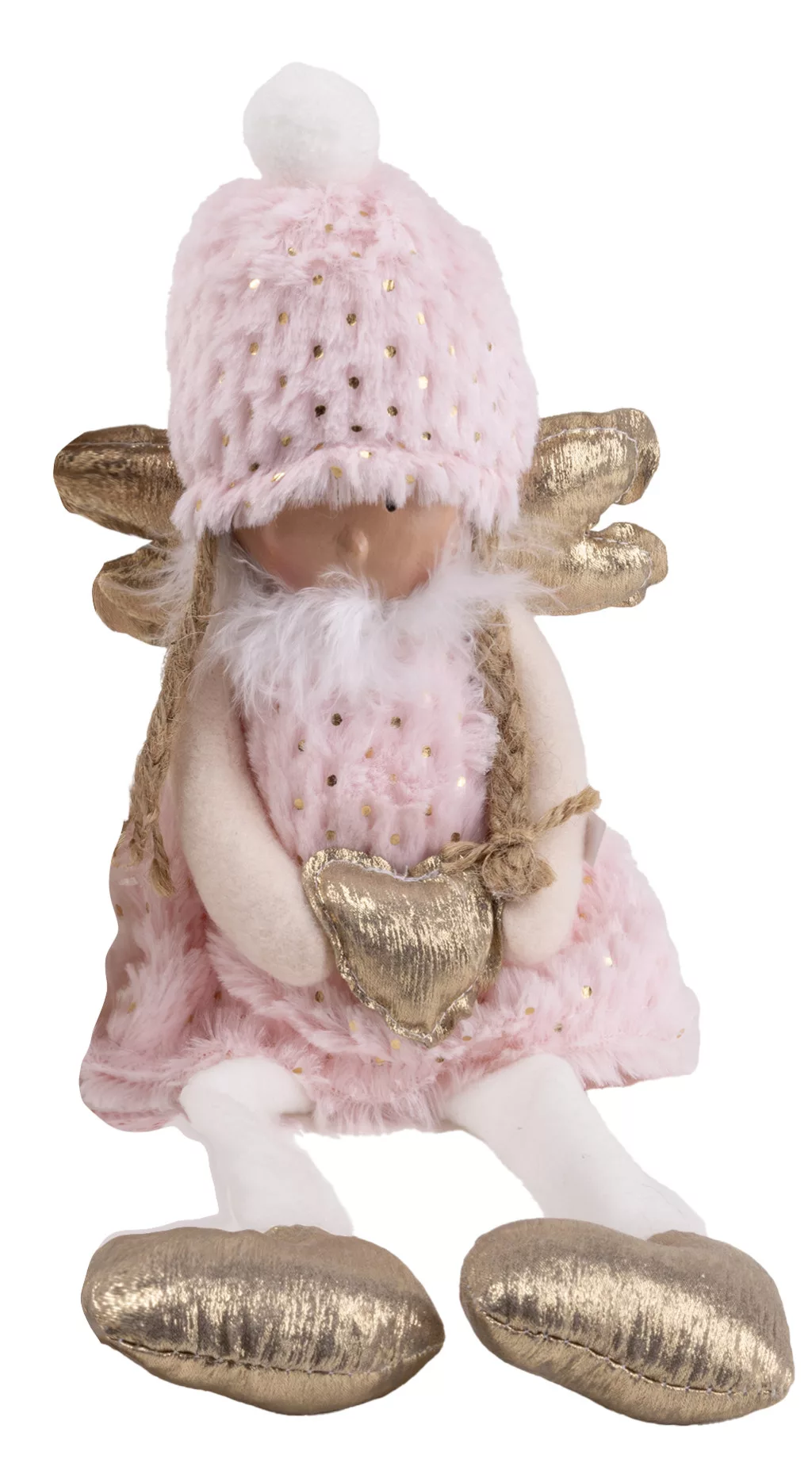 TEXTIL ANGYAL LÓGÓ LÁBBAL, RÓZSASZÍN ÉS ARANY, SZÍVVEL A KEZÉBEN
