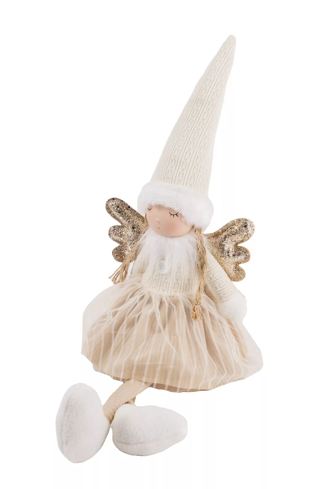 TEXTIL ANGYAL LÓGÓ LÁBBAL, VILÁGOS BARNA ÉS FEHÉR, ARANY SZÁRNNYAL