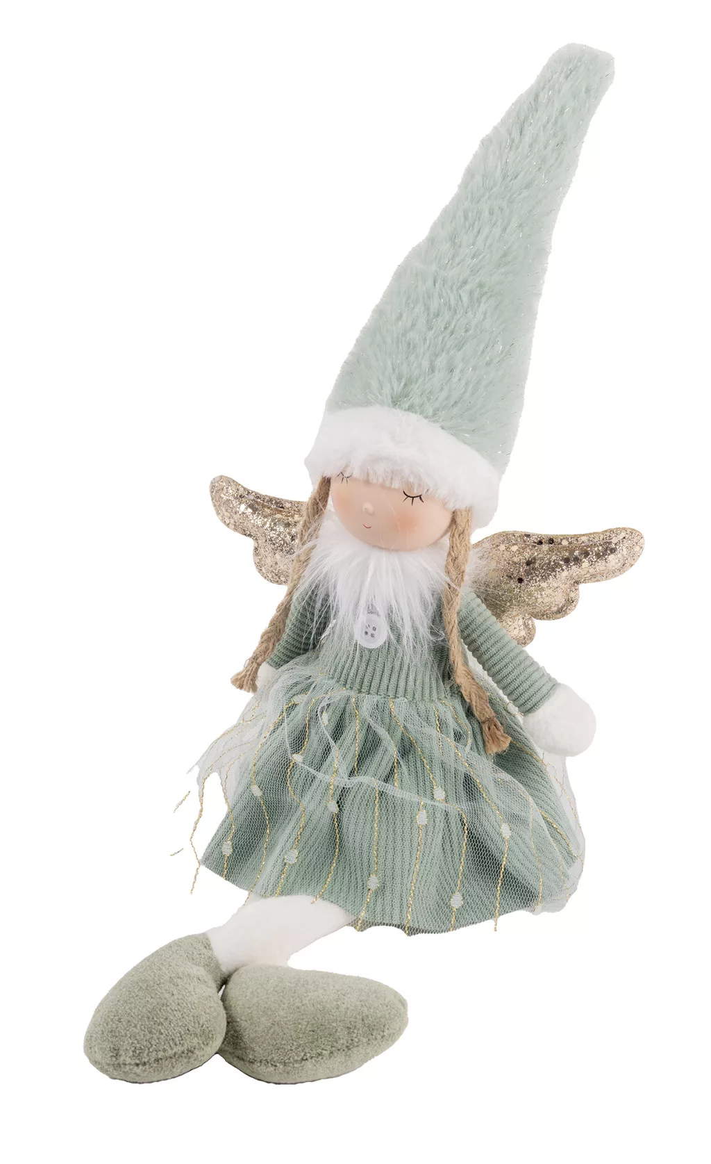 TEXTIL ANGYAL LÓGÓ LÁBBAL, ZÖLD ÉS FEHÉR, ARANY SZÁRNNYAL