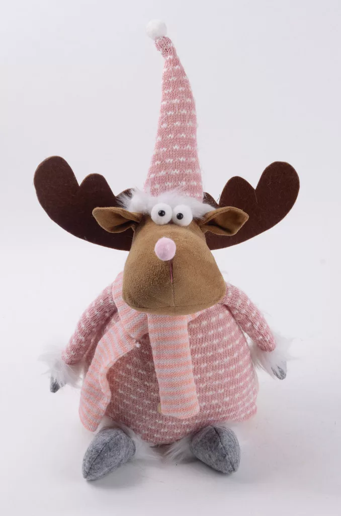 TEXTIL RÉNSZARVAS, ÁLLÓ, RÓZSASZÍN ÉS FEHÉR CSÍKOS RUHÁBAN
