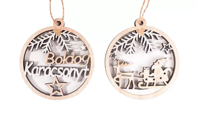 FA AKASZTÓS KÖRBEN BOLDOG KARÁCSONYT FELIRAT VAGY MIKULÁS SZÁNON, NATÚR ÉS FEHÉR