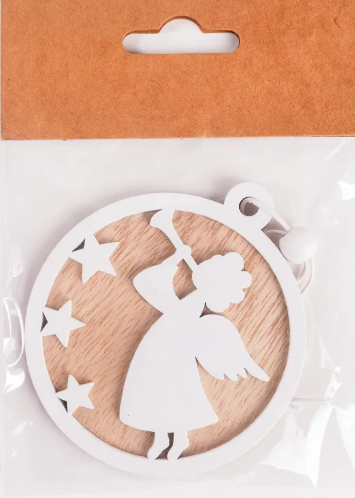 FA AKASZTÓS GÖMBDÍSZ FEHÉR, ANGYAL NATÚR