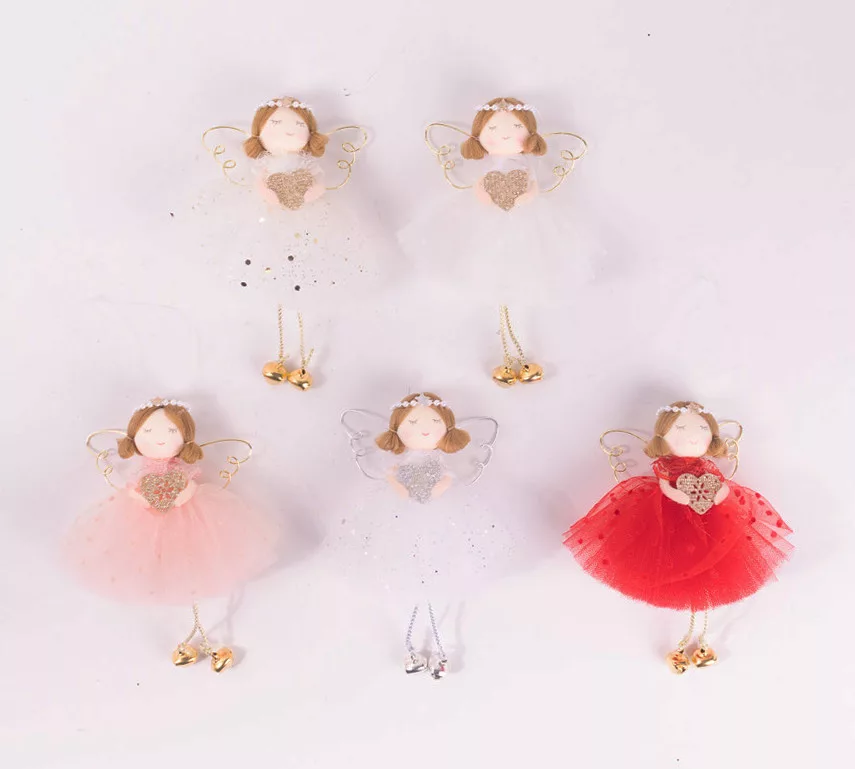 TEXTIL AKASZTÓS ANGYAL, SZÍVVEL A KEZÉBEN
