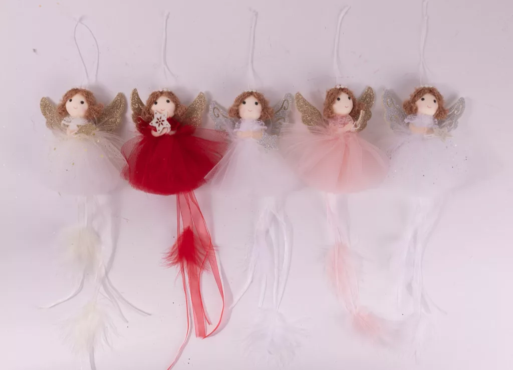 TEXTIL AKASZTÓS ANGYAL, TÜLL RUHÁS, TOLLAL