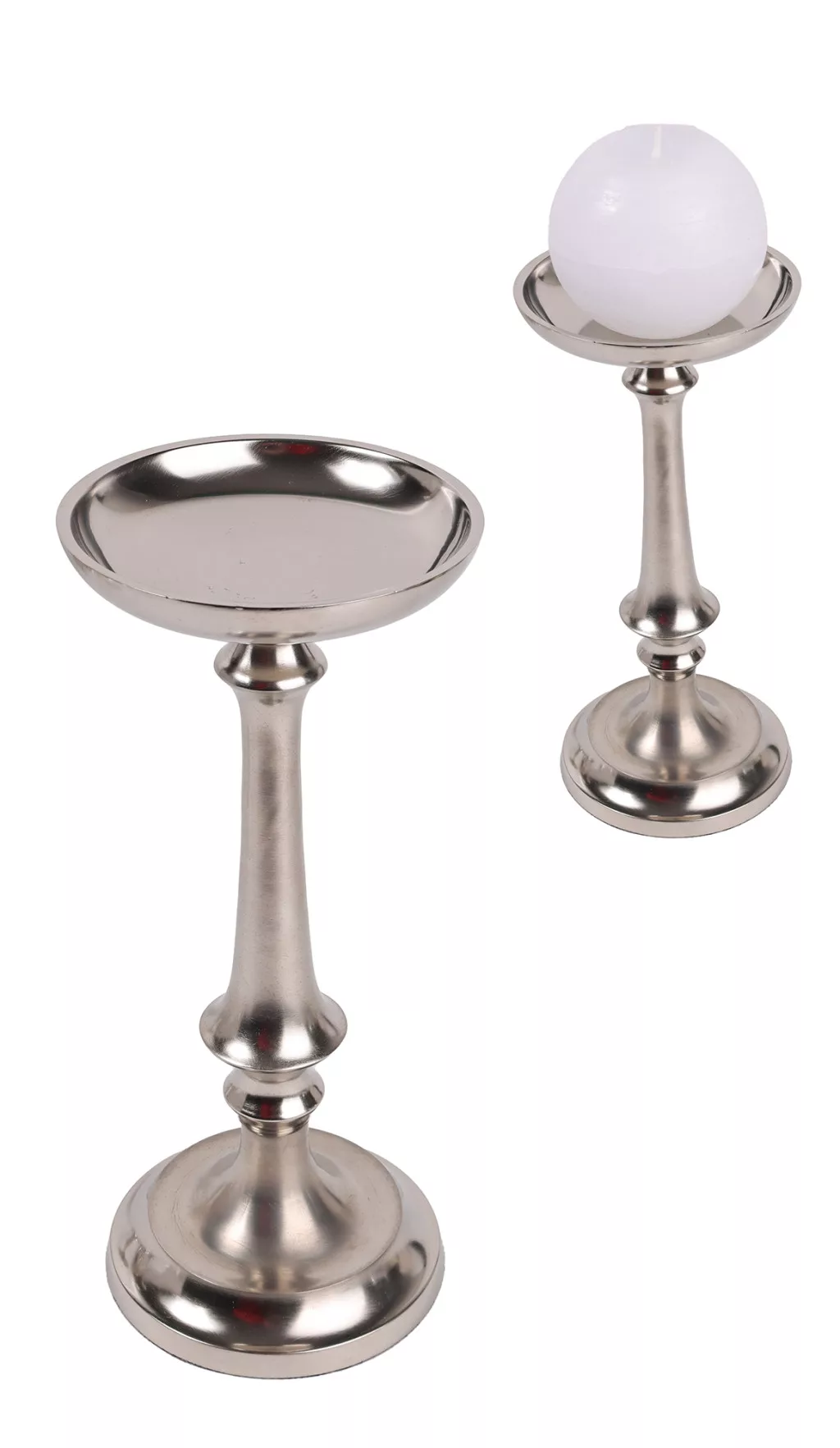 ALUMÍNIUM GYERTYATARTÓ, TALPAS, KELYHES, MATT EZÜST