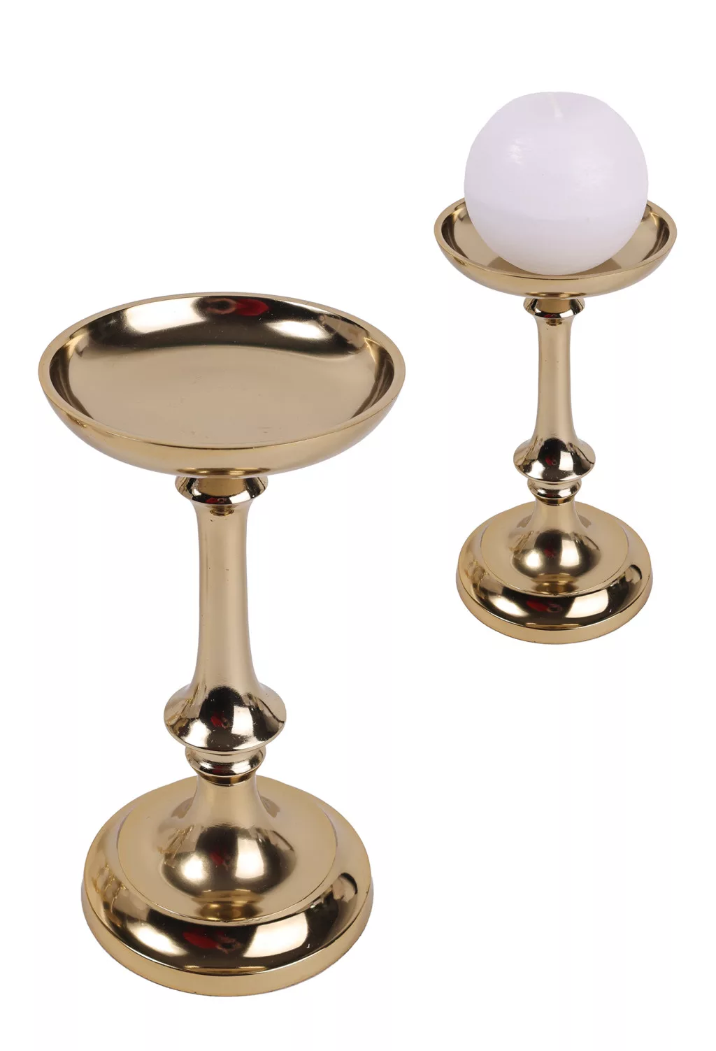 ALUMÍNIUM GYERTYATARTÓ, TALPAS, KELYHES, ANTIK ARANY