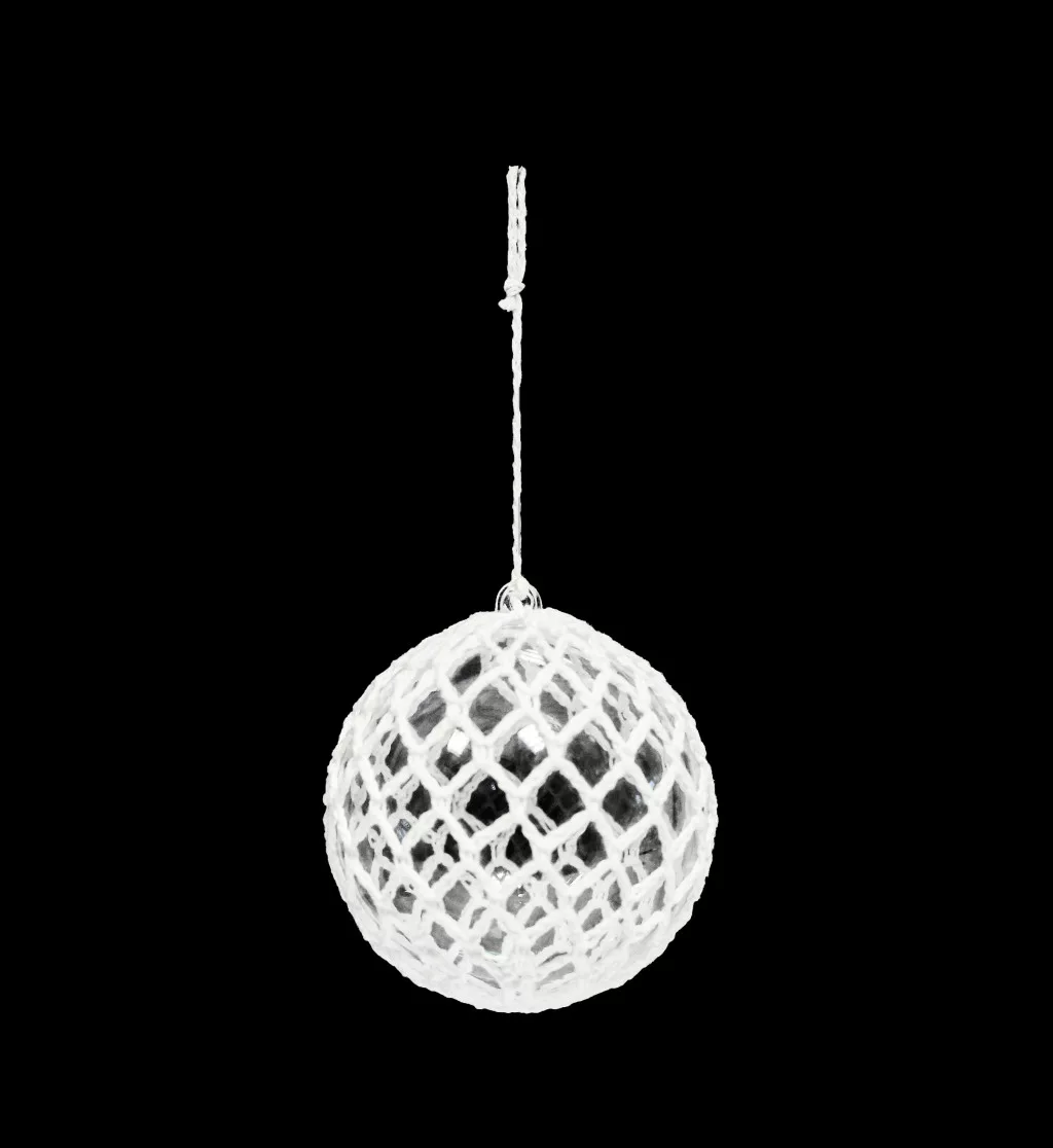DEKOR AKASZTÓS HORGOLT DÍSZ, MŰANYAG GÖMB, FEHÉR