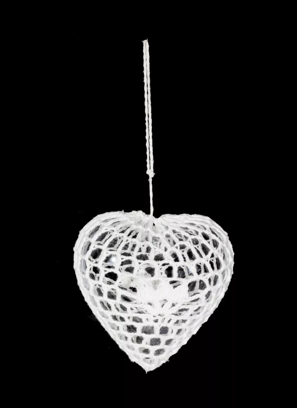 DEKOR AKASZTÓS HORGOLT DÍSZ, MŰANYAG SZÍV, FEHÉR