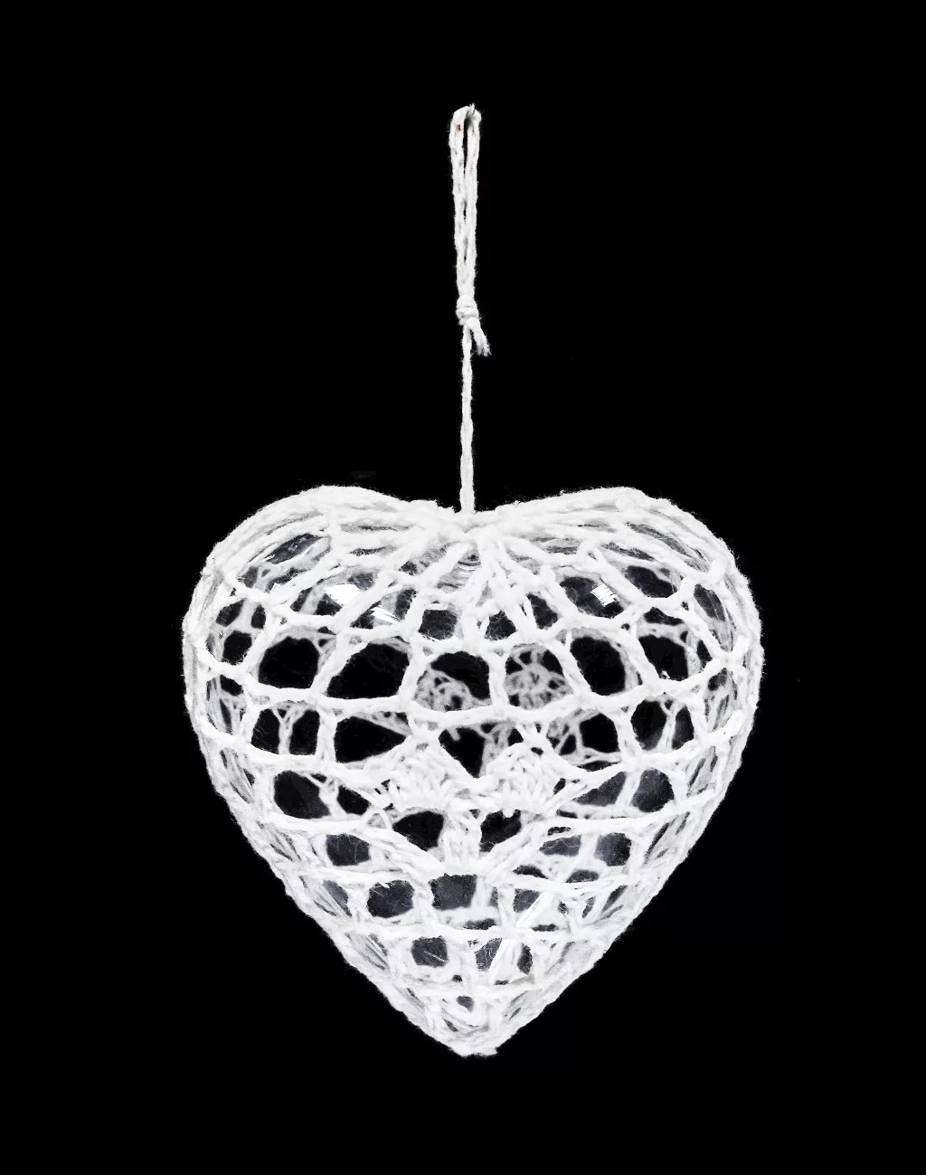 DEKOR AKASZTÓS HORGOLT DÍSZ, MŰANYAG SZÍV, FEHÉR
