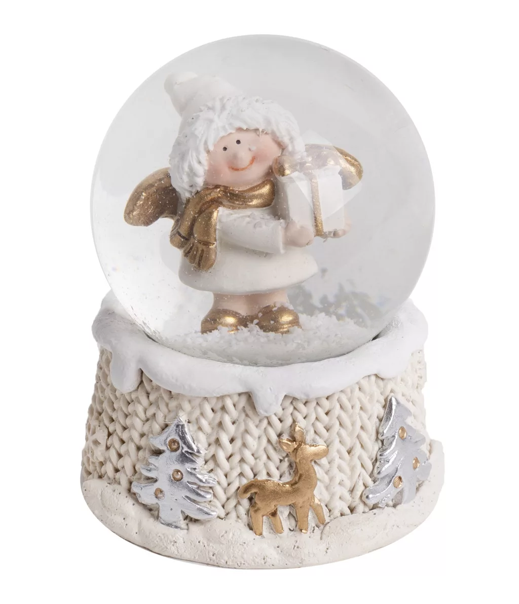 POLIREZIN HAVAZÓ GÖMB, ANGYAL AJÁNDÉKKAL, FEHÉR/EZÜST/ARANY
