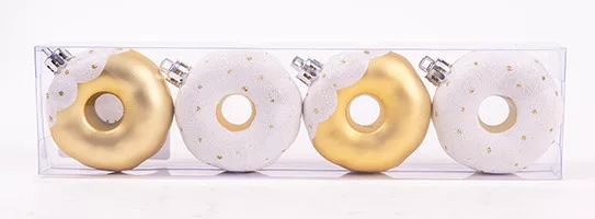 KARÁCSONYFA DÍSZ, AKASZTÓS, FÁNK, SZETTBEN, 4 DARABOS, GLITTERES, ARANY ÉS FEHÉR