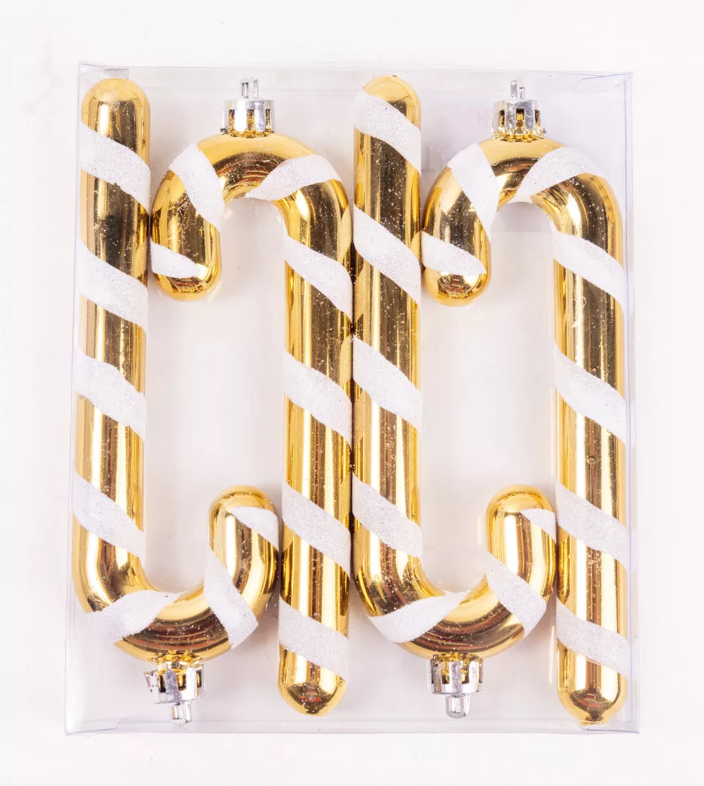 KARÁCSONYFA DÍSZ, AKASZTÓS, BOT, SZETTBEN, 4 DARABOS, GLITTERES, ARANY ÉS FEHÉR