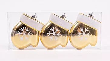 KARÁCSONYFA DÍSZ, AKASZTÓS, KESZTYŰ, SZETTBEN, 3 DARABOS, GLITTERES, ARANY ÉS FEHÉR